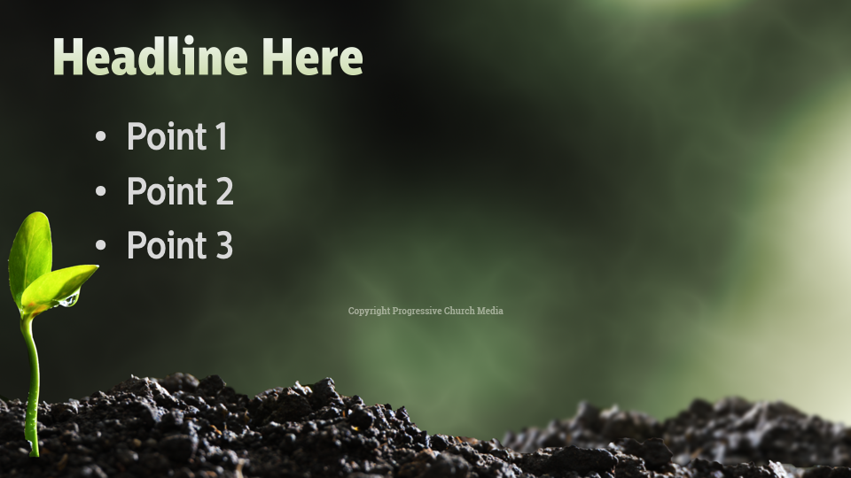 Growth PowerPoint. A seedling peaks out of the soil – a symbol of growth and new beginnings. Video, PowerPoint, graphics, poster/flyer and social media templates. English and Spanish.