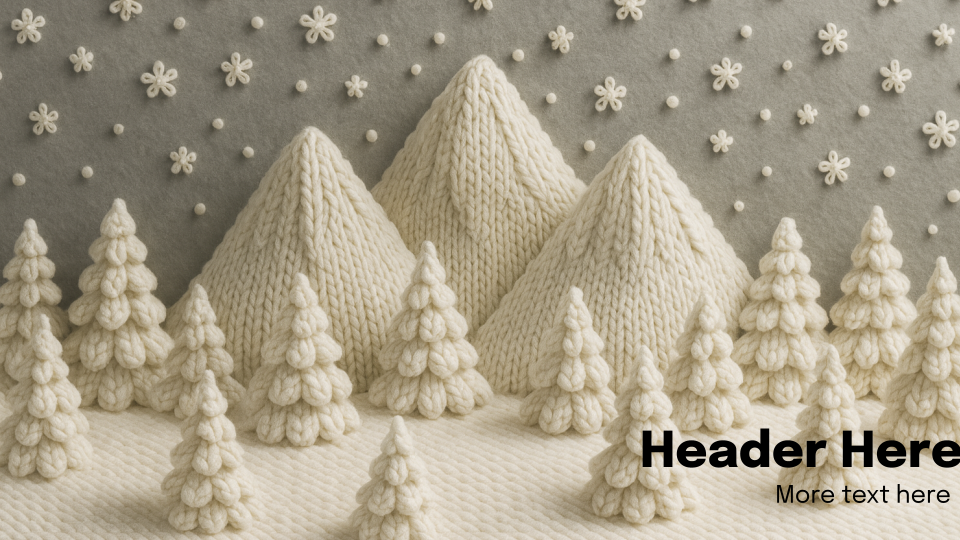 Knitted Mountains. Fun wintery mountains made from knitted yarn. Two templates you can use to customize. Fonts included. PowerPoint, Social Media.