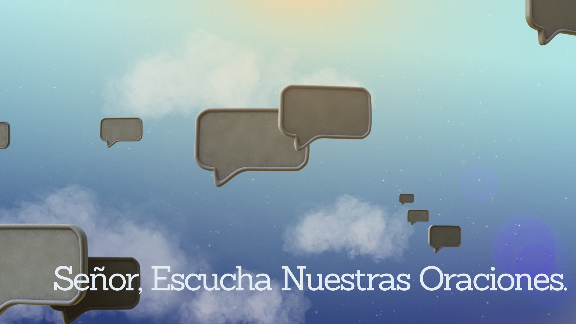 Prayers PowerPoint. Thought bubbles (prayers) slowly drift skyward in this set of worship resources. Perfect for a sermon series or study group on prayer. Video, PowerPoint, graphics, social media. English and Spanish.